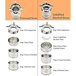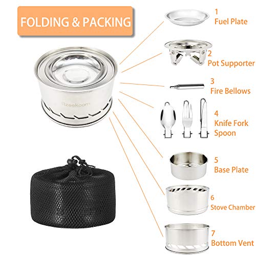 Details: Azeekoom Camping Kocher, Holzofen Tragbar Alkohol Ofen Holzofen Camping Holzvergaser Kocher mit Klappmesser, Gabel, Löffel, Teleskop Blasrohr für Outdoor Backpacking Wandern Reisen Picknick BBQ