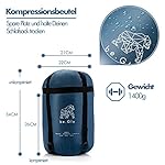 ROBUST UND KOMPRIMIERBAR – Die Außenhülle unseres Mumienschlafsacks besteht aus extra reißfestem Ripstop Polyester. Zudem ist unser Schlafsack ultraleicht und lässt sich durch den Kompressionssack extrem verkleinern!