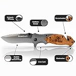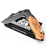 Details: BearCraft Klappmesser in Carbon Design mit **GRATIS eBook** | Outdoor Survival Taschenmesser | Einhand-Rettungsmesser mit Glasbrecher und Gurtschneider