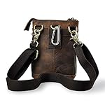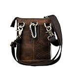 Die Echtleder-Tasche mit den Maßen 19 x 14 cm x 7 cm (Tragegurt abnehmbar und verstellbar, kann hinten, vorne oder seitlich sowie als Brustgurt oder Umhängetasche getragen werden; mehrere Trageoptionen dank Gürtelschlaufe, Tragegurt und Karabiner-Haken) ist ein echter Allrounder für Outdoor-Aktivitäten wie Wandern, Klettern oder Reiten; die Arbeit, kurze Trips, fürs Fahrrad, Motorrad oder den Städtebummel zwischendurch und lässt sich über metallische Reißverschlüsse und einen magnetischen Druckknopf (vorne) leicht öffnen und verschließen. Mit dieser Hüfttasche für Männer und Frauen haben Sie die Hände immer frei und transportieren stilsicher all die kleinen Utensilien, die Sie für Beruf und Freizeit ständig zur Hand haben wollen.