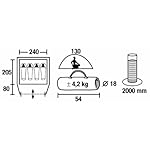 2.000mm Wassersäule garantieren ein trockenes Schlafzimmer auch bei Schlechtwetterperioden. Der formschöne und funktionale Eingang lässt sich bequem zur Seite rollen und hängt nicht lästig vor dem Gesicht bei der ersten Wetterkundung am Morgen. Der Vorbau bietet Stauraum für die Campingausrüstung. Praktische Taschen im Innenzelt für Utensilien und ein Lampenhalter für eine Campingleuchte oder Taschenlampe runden den Komfort ab. Dauerventilation belüftet das Zelt für erholsamen Schlaf. Der Eingang mit Moskitonetzfenster hält lästige Plagegeister fern. Die Nähte sind mittels Nahtband wasserdicht versiegelt und gewähren eine bessere Nahtreißfestigkeit. Das Nevada bietet vier Personen Unterkunft oder reichlich Platz für drei Personen mit Gepäck. Eingang mit Gazefenster. Tragetasche.