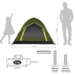 WASSERDICHT UND WETTERFEST: Lüftungsöffnung im Dach sorgt für eine optimale Luftzirkulation und die separate Belüftungsabdeckung über dem Zeltdach schützt gegen Regen und Schnee; dank zusätzlichem Moskitonetz am Eingang können Sie sich auch bei offener Tür ungestört im Zelt aufhalten – auch als Familienzelt perfekt, mit genügend Platz für 3 Personen – inklusive praktischer Tragetasche mit Reißverschluss, Abspannleinen und Heringen