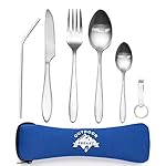CAMPINGBESTECK & REISEBESTECK – Für alle Outdoor Fans, die keinen Schnickschnack wollen! Dieses Campingbesteck ist auf das wesentliche optimiert: Messer, Gabel, 2 Löffel und ein Flaschenöffner in einer witterungsfesten Neoprenhülle. Alle, die auch unterwegs mit einem „normalen“ Essbesteck speisen wollen, kommen hier voll auf Ihre Kosten.