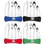 OUTDOOR FREAKZ Outdoor Reisebesteck und Campingbesteck aus Edelstahl mit Neoprenhülle (4er Set ++)