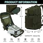 Details: 43L Militärischer taktischer Rucksack,Kompakt & wasserdicht Barbarians Molle Tasche Armee Assault Rucksack für Outdoor Wandern Camping Reisen. (Grün)
