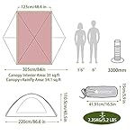 Das übergroße Campingzelt: Bodengröße: 86,6 x 48,4 Zoll (220 x 123 cm). Höhe: 43,5 Zoll (110,5 cm). Die Markise hat eine Innenfläche von 31 Quadratmetern. Gewicht: 2,35 kg. Bietet ausreichend Platz für zwei normal große Erwachsene oder drei schlanke Erwachsene. Wandern noch angenehmer!