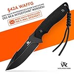 Das große Outdoor-Messer von Wolfgangs – weil Qualität durch nichts zu ersetzen ist! Um ein wirklich gutes Messer herzustellen muss man ganz vorne anfangen: Nur die besten Materialien überzeugen auch noch Jahre später! Zudem muss die Verarbeitung 100% detailgenau sein und abschließend streng kontrolliert werden, um keine Ausreißer zuzulassen… Genau nach diesem Schema geht Wolfgangs traditionell vor, um Messer in einzigartiger Qualität herzustellen! Ihre Vorteile auf einen Blick: – Aus einem Stück D2 Stahl – Kydex Holster mit Gürtelclip – Service direkt von Wolfgangs – Set aus Feuerstarter & Notpfeife – 2 Jahre Zufriedenheitsversprechen Klicken Sie jetzt auf den Einkaufswagen am Anfang der Seite und freuen Sie sich über ein echtes Premium-Messer! Produktdetails: – Gesamtlänge: 23 cm – Klingenlänge: 10 cm – Klingenbreite: 3.5 cm – Klingenstärke: 4.5 mm – Klingenhärte: 60 HRC – Klingenoberfläche: Spiegelpolitur und gebürstet – Griffmaterial: G10 – Klingenmaterial: D2 Stahl Vakuumwärmebehandlung