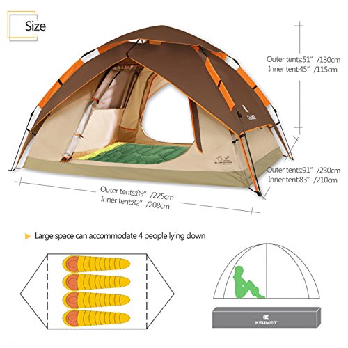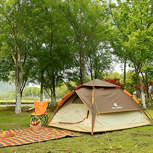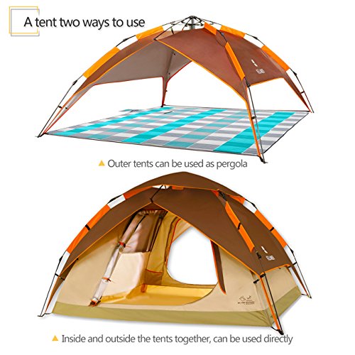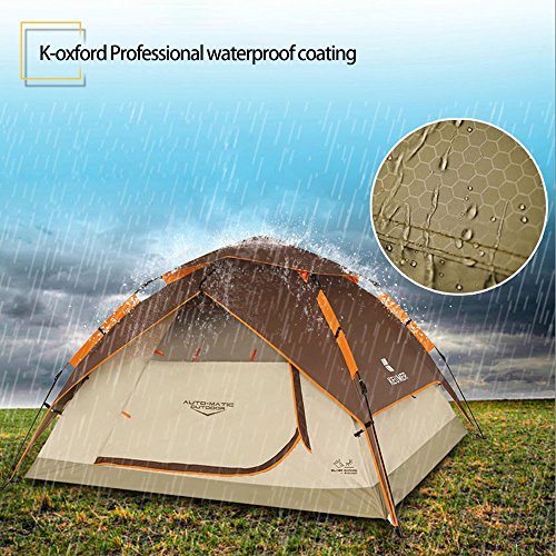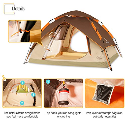 Details: ZOMAKE Wasserdicht Zelt für 3 Personen,Familie Kuppelzelt Camping Automatik Sekundenzelt,Outdoor Festival Zelt (Braun)